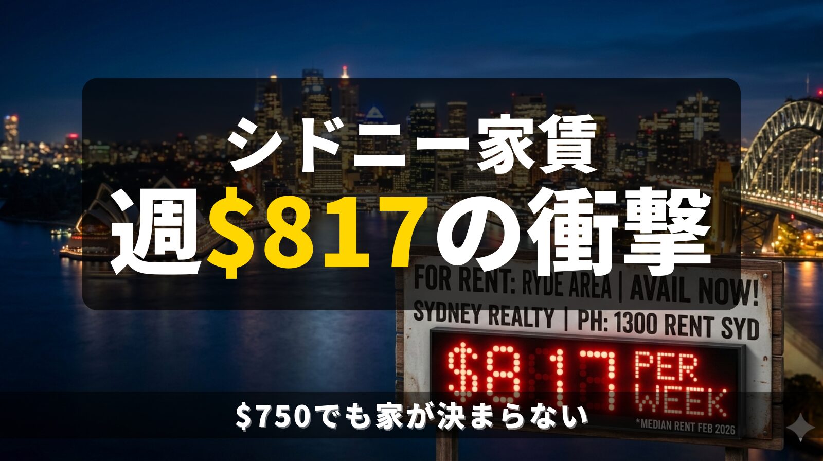 2026年、シドニーの家賃中央値は週$817。ブリスベンから家探しをしている私の体感でも、$700台が当たり前で$500台はほぼ消滅。移住前に知っておきたいシドニー住宅危機のリアルを、データと実体験で解説します。
