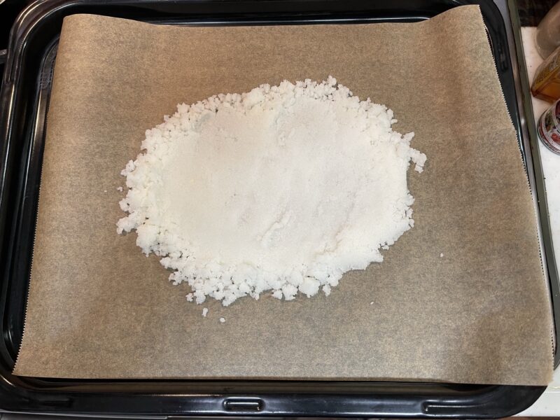 牛タンブロックを塩釜で覆わないといけないので、底も忘れずに覆います。