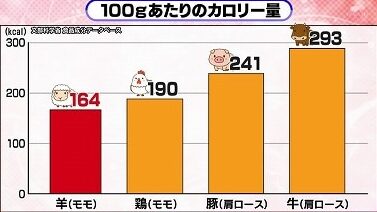 牛肉、豚肉、鶏肉、羊肉の4種類のお肉の中で、最もカロリー量が低いのは羊肉なんです!