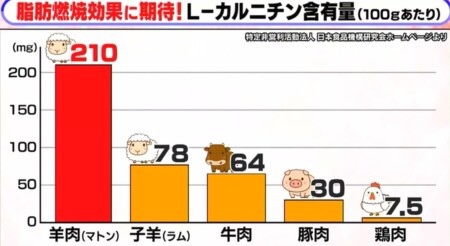 脂肪燃焼効果のあるL-カルニチンが1番含まれるお肉はダントツで羊肉でした。