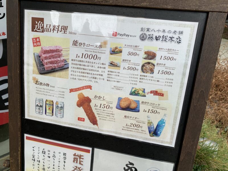 この旅で能登牛を食べれるお店を探したんですが、なかなか良い店が見つからなかったのでここで能登牛串を食べることをめちゃくちゃおすすめします!