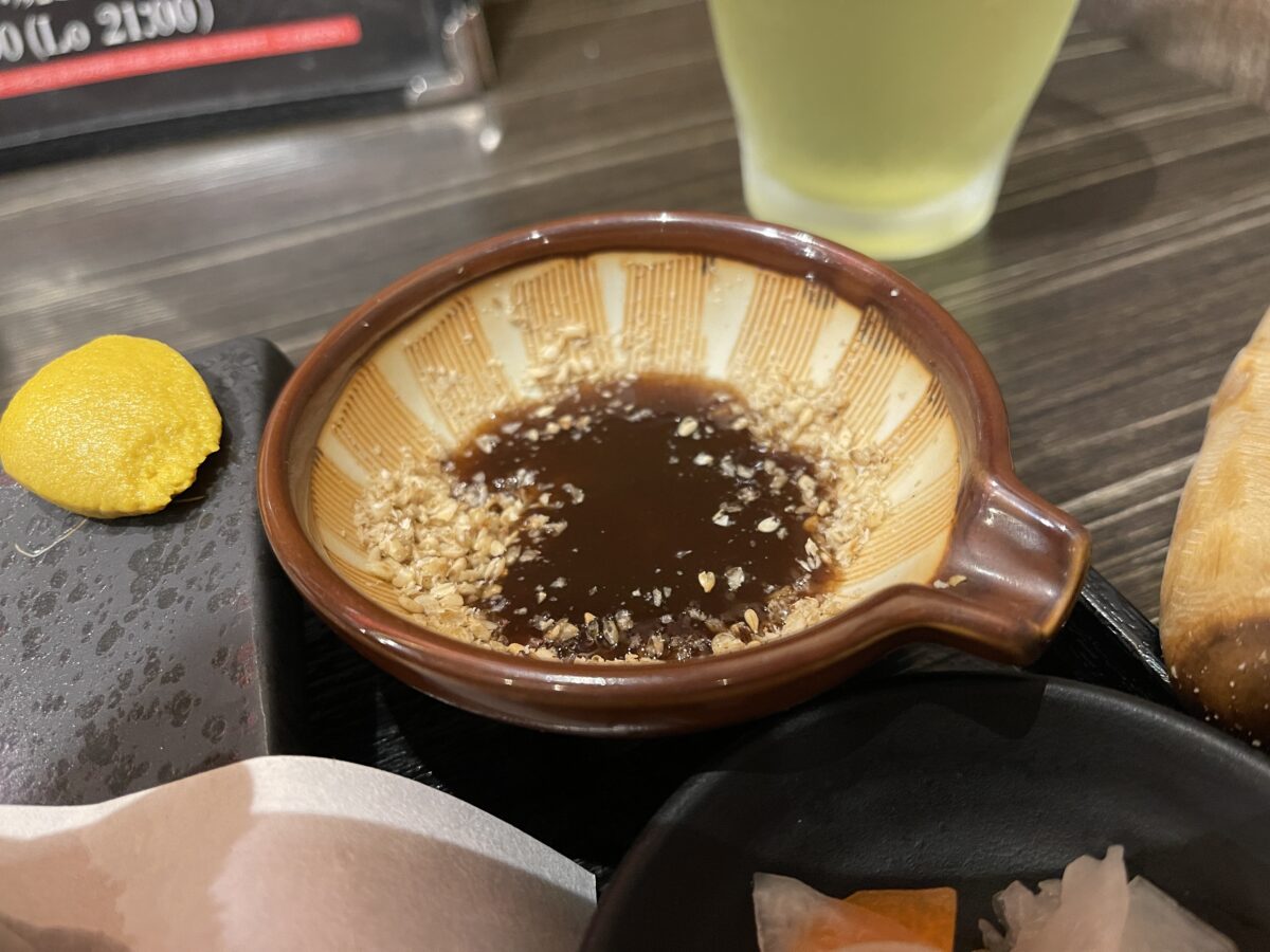 すり鉢に入っている胡麻をしっかりとすり潰すと、胡麻の良い香りがたちソースと合わせるとこれまた美味しいんです。