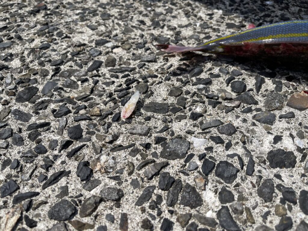 計4匹釣り上げましたが、4匹全部にエビみたいな寄生虫?がエラの下の方にくっついてました。