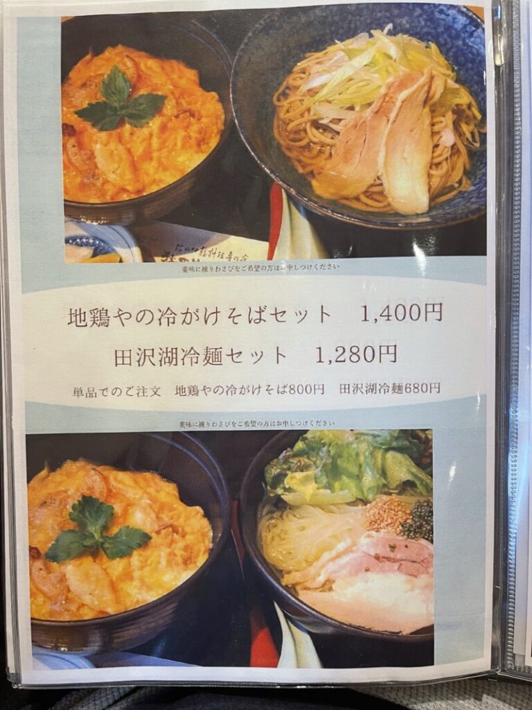 できれば大館曲げわっぱに入った親子丼を食べていただきたいので、お金の余裕があるのなら「極上親子丼」+単品で「地鶏やの冷がけそば」か「田沢湖冷麺」を食べるのをおすすめします!