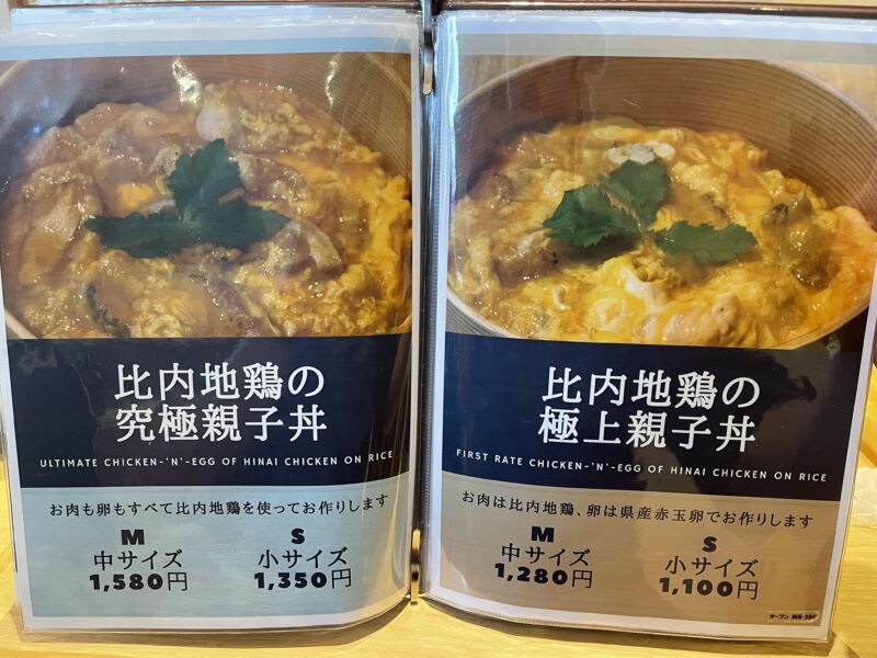 見た目では究極親子丼と違いがわかりませんが、こちらは比内鶏のお肉に卵は秋田県産の赤卵をつかいます。
