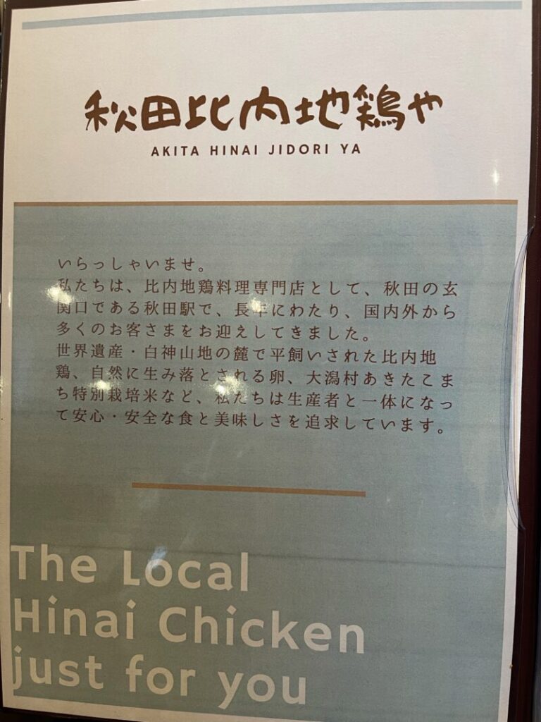 秋田比内地鶏やホームページメニューより