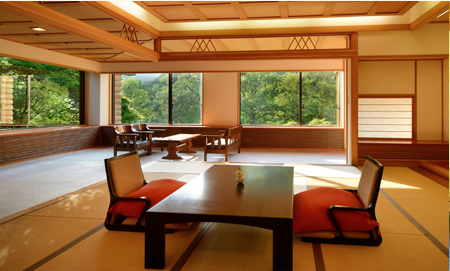 大自然に囲まれた空間で、鮮やかな紅葉に染まる山々を一望することができます。