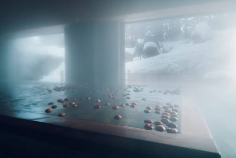 温泉はこじんまりとしたサイズでりんごがたくさん浮いてました。笑