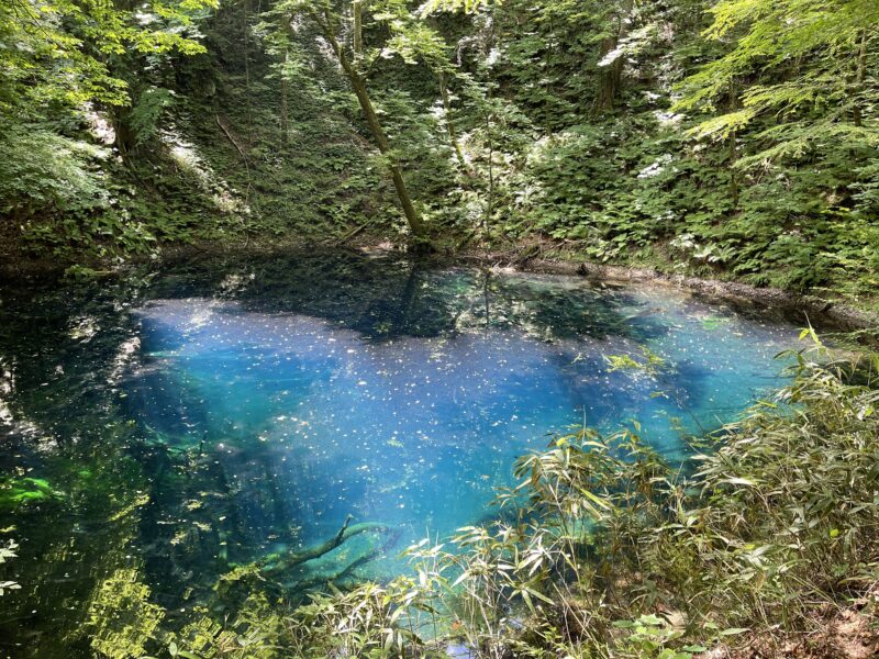 青池の青が最も映えるのは晴れの日の午前11時前後と言われています。
