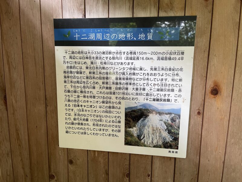 十二湖という湖沼群は、何らかの原因により川がせき止められて形成されたのではないかと言われています。その原因の一つが1704年の能代大地震による崩山(くずれやま)の崩壊が考えられています。