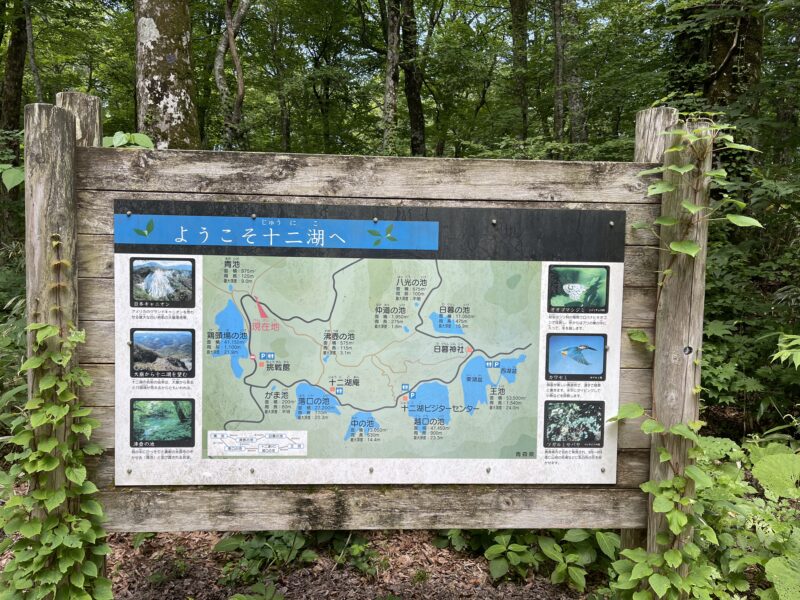 歩き始めると見えてくる十二湖案内図。