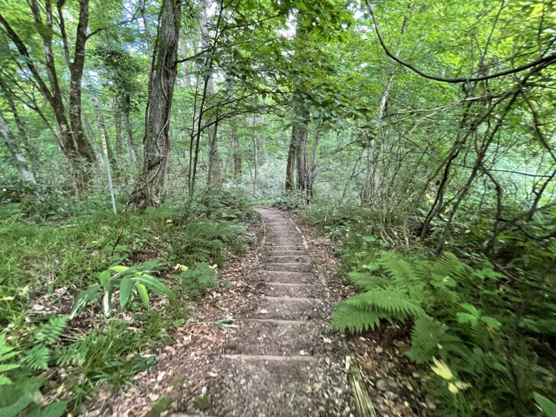 青池からブナ自然林へ続く上りの階段が結構急で長くて1番シンドい難所です。