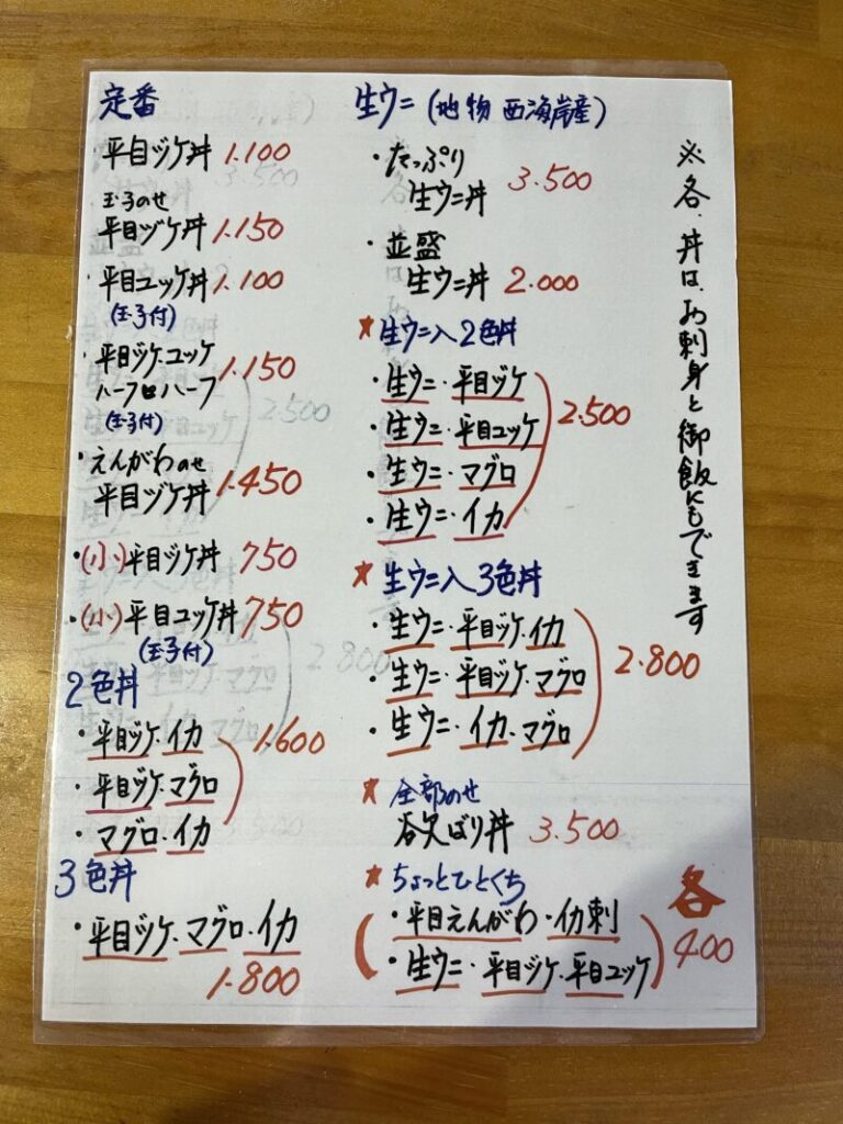2色丼、3色丼、欲張り丼など、多種多様などんぶりがある上に、「ちょっとひとくち」という悪魔の囁きのサイドメニューもあり、あなたのすべての欲を満たしてくれるであろう。