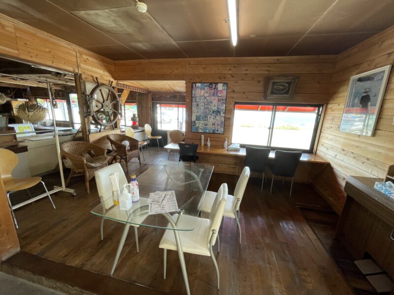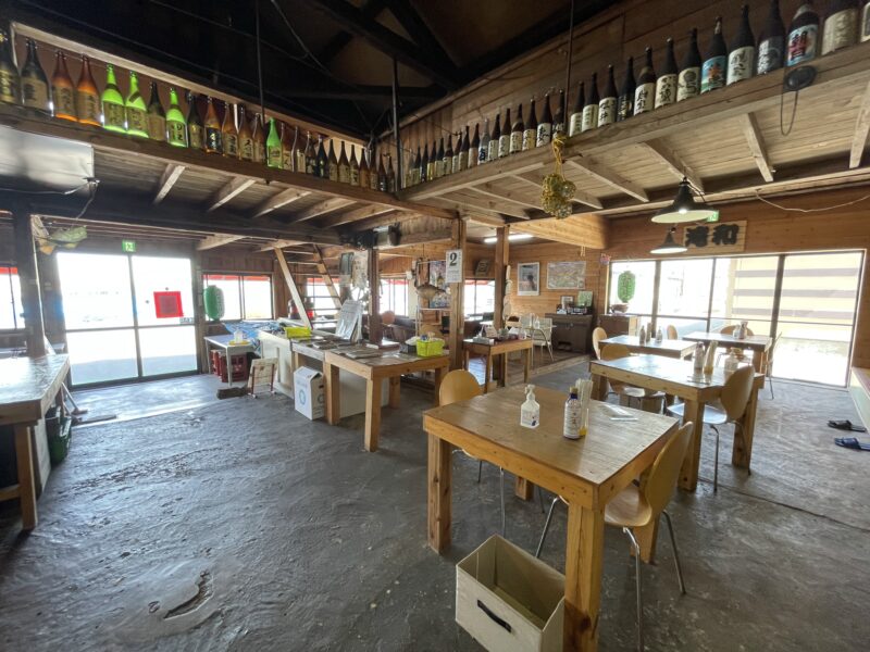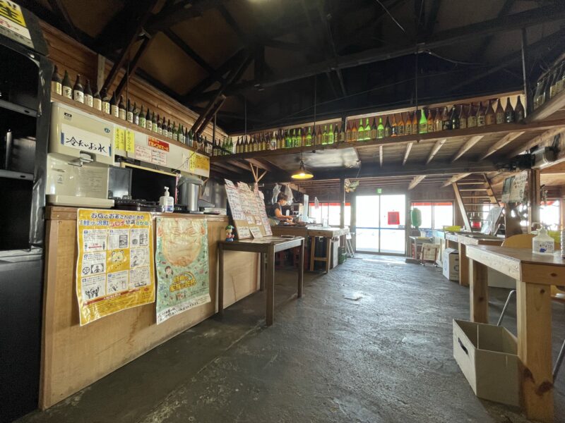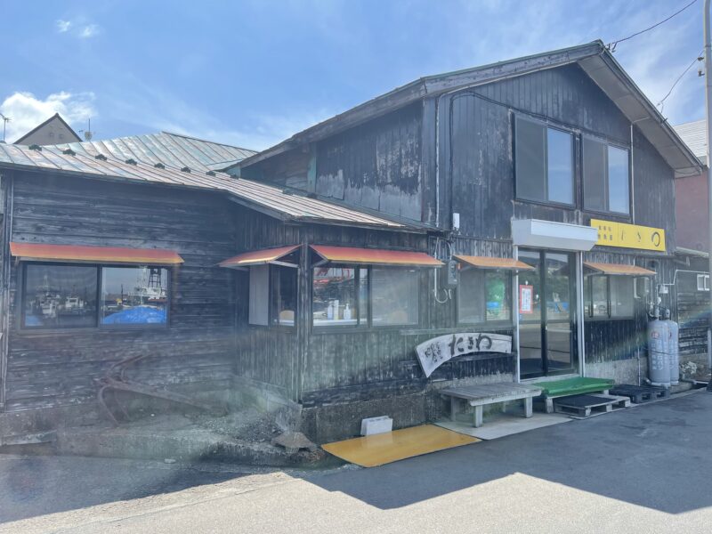 鯵ヶ沢漁港のすぐ近くの海沿いにお店はあります。