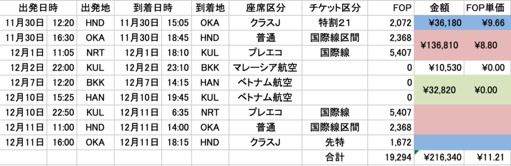 計画的に修行できるのであれば、海外発券を利用した方がFOP単価はかなり低く抑える事が出来ると思います。
